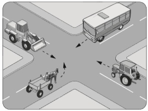 #38. Şekildeki karşılaşmada hangi araç öncellikle geçiş hakkını kullanmalıdır?