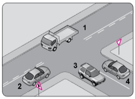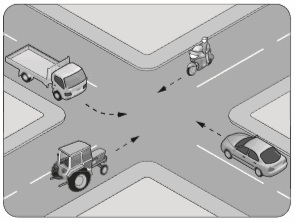 #26. Şekildeki karşılaşmada hangi araç öncellikle geçiş hakkını kullanmalıdır?